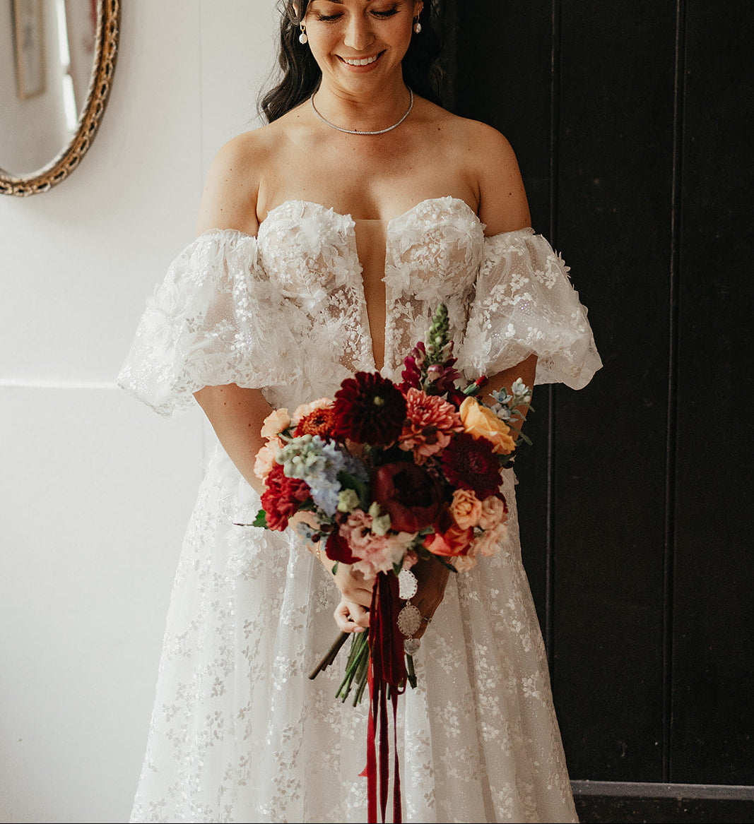 Un mariage d’hiver fleuri et lumineux : feuillages de saison, baies rouges et touches végétales s’unissent pour créer une atmosphère chaleureuse, élégante et festive.